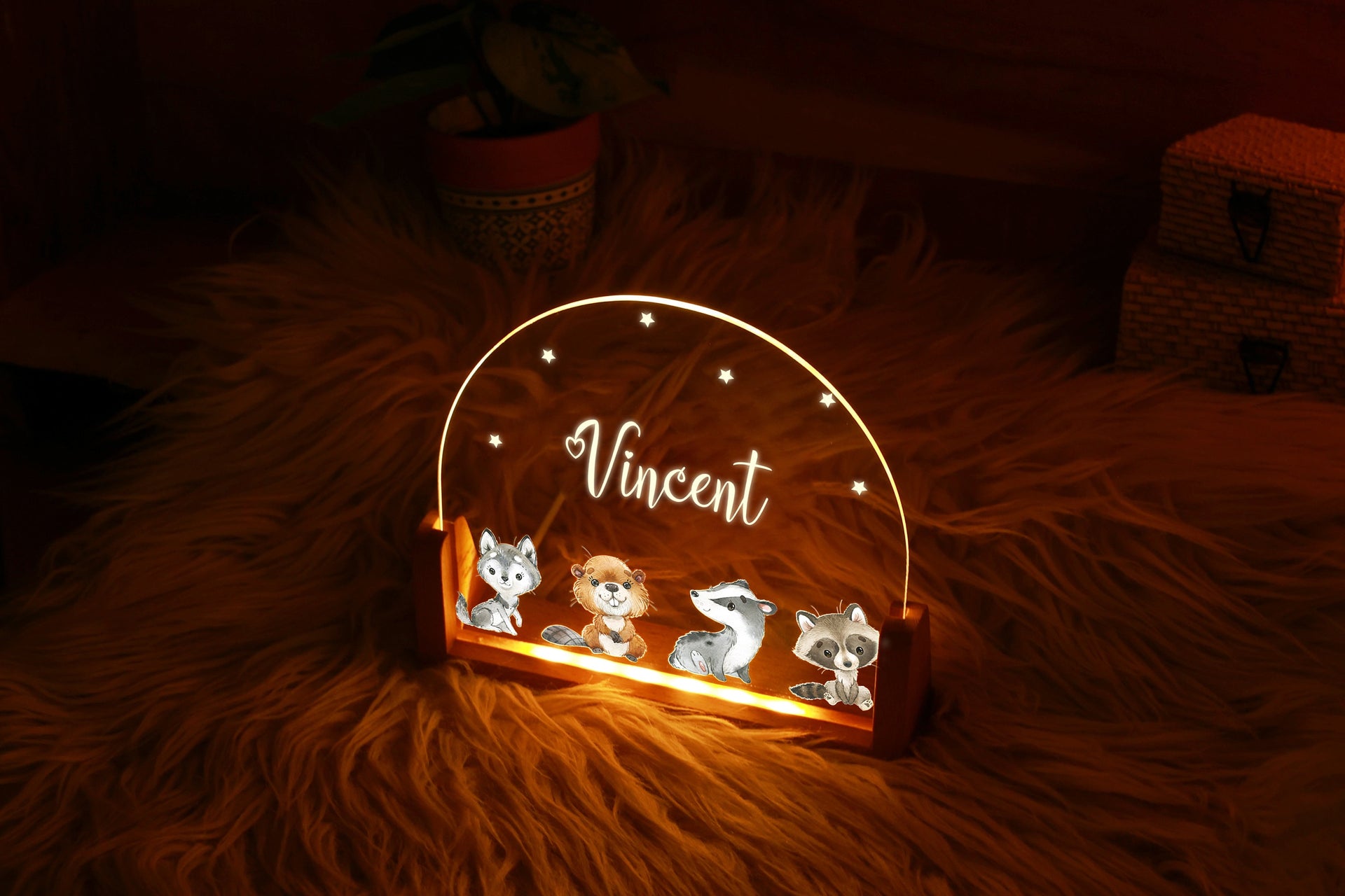 Personalized Kids Safari Nightlight, Adorable Animal LED Night Lamp