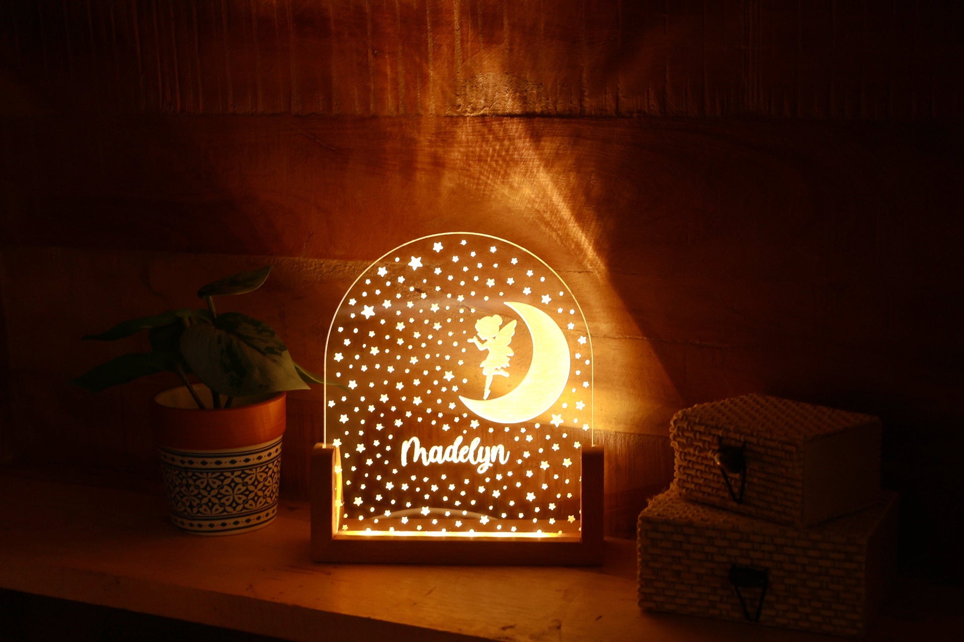 Erhellen Sie die Welt Ihres Kindes mit der Laune der Feen und der Magie des Mondes. Unsere Fairy Plexi-Nachtlampe ist mehr als nur ein Licht; sie lädt zum Träumen und Fantasieren ein.