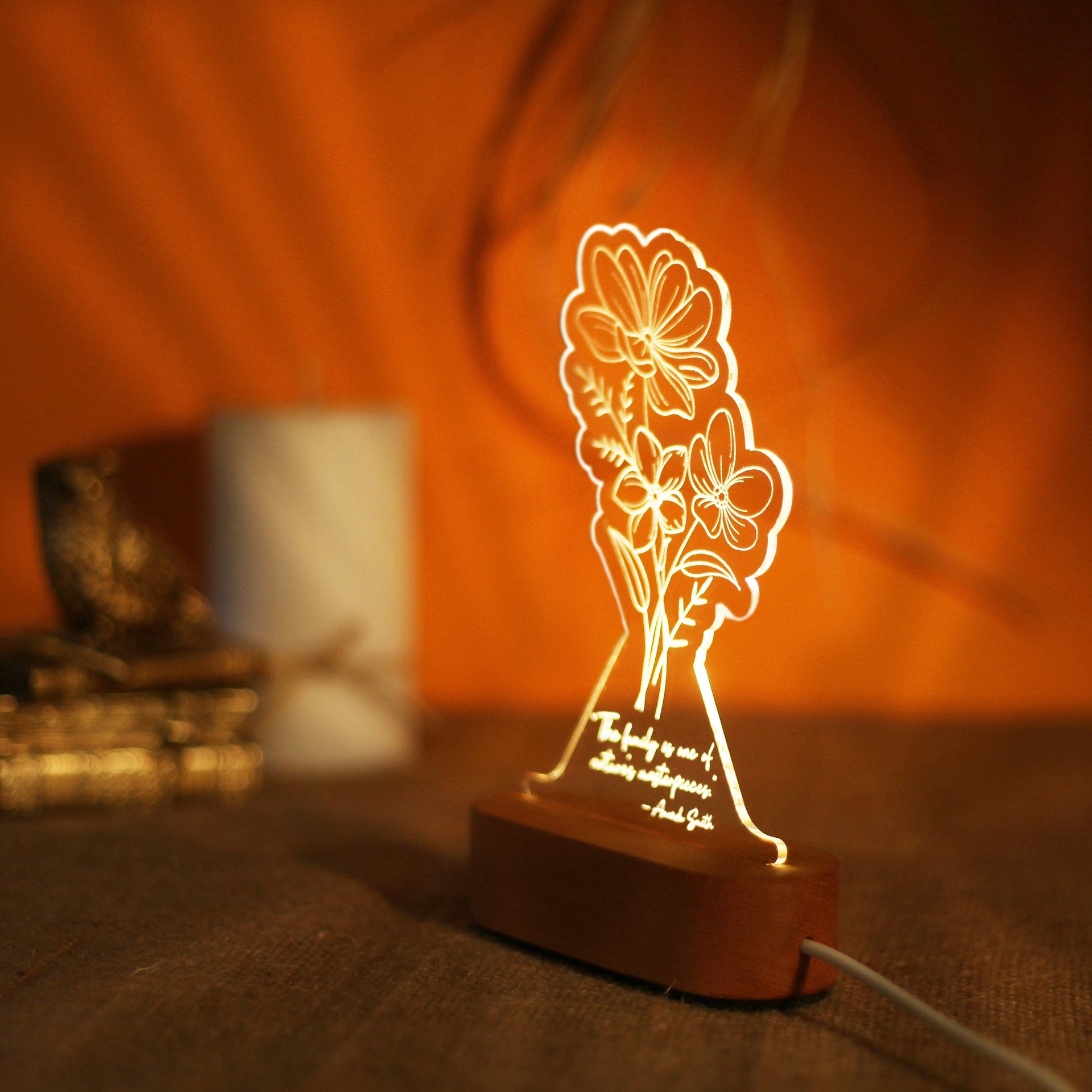 Custom Flower Night Light for Mom Personalized Gift