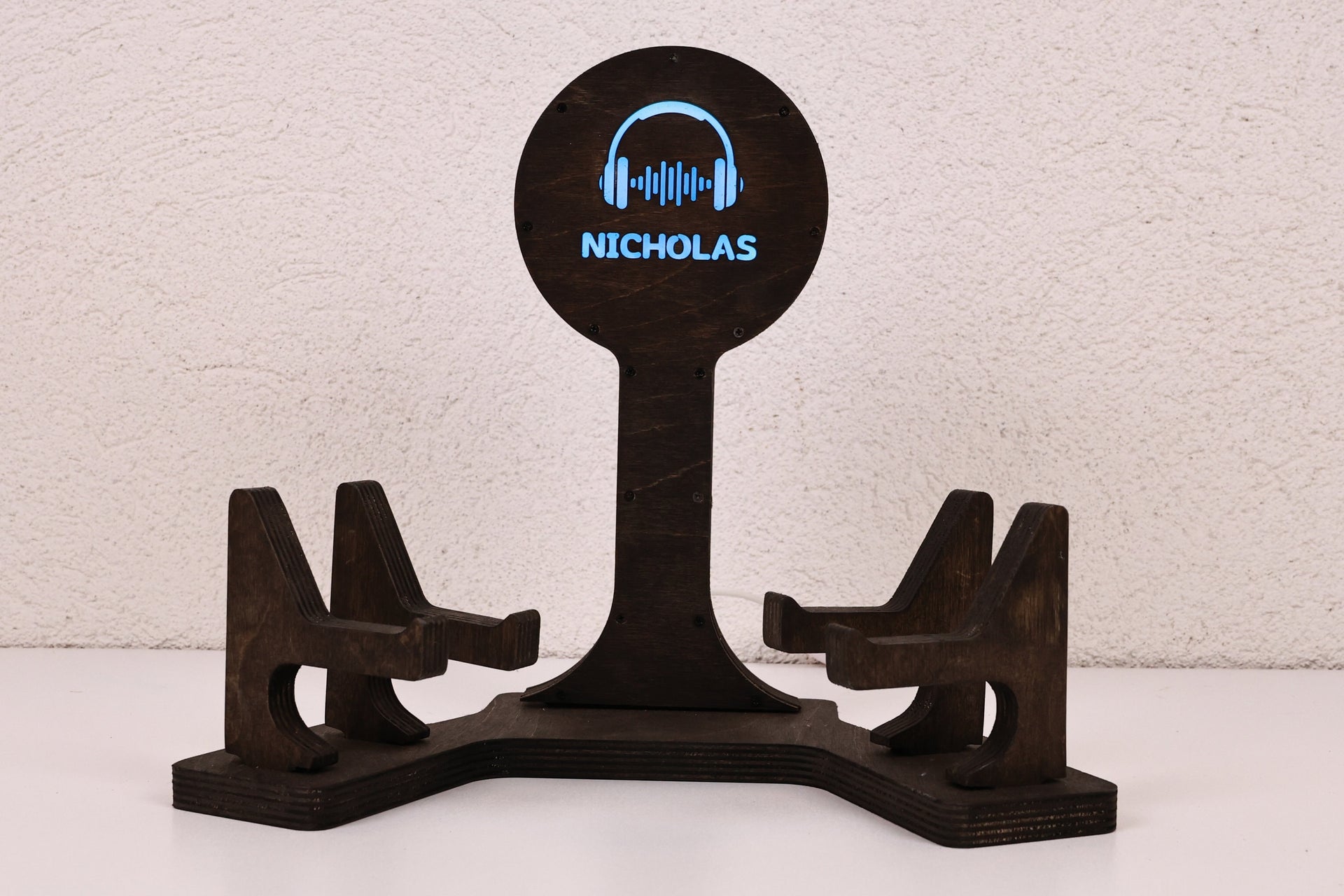 Meet a legend born for Gamer Dads, Gamer Partners, Gamer Brothers, Gamer Friends and all game enthusiasts: Color Changing LED Wooden Controller Holder and Headset Gaming Station!
