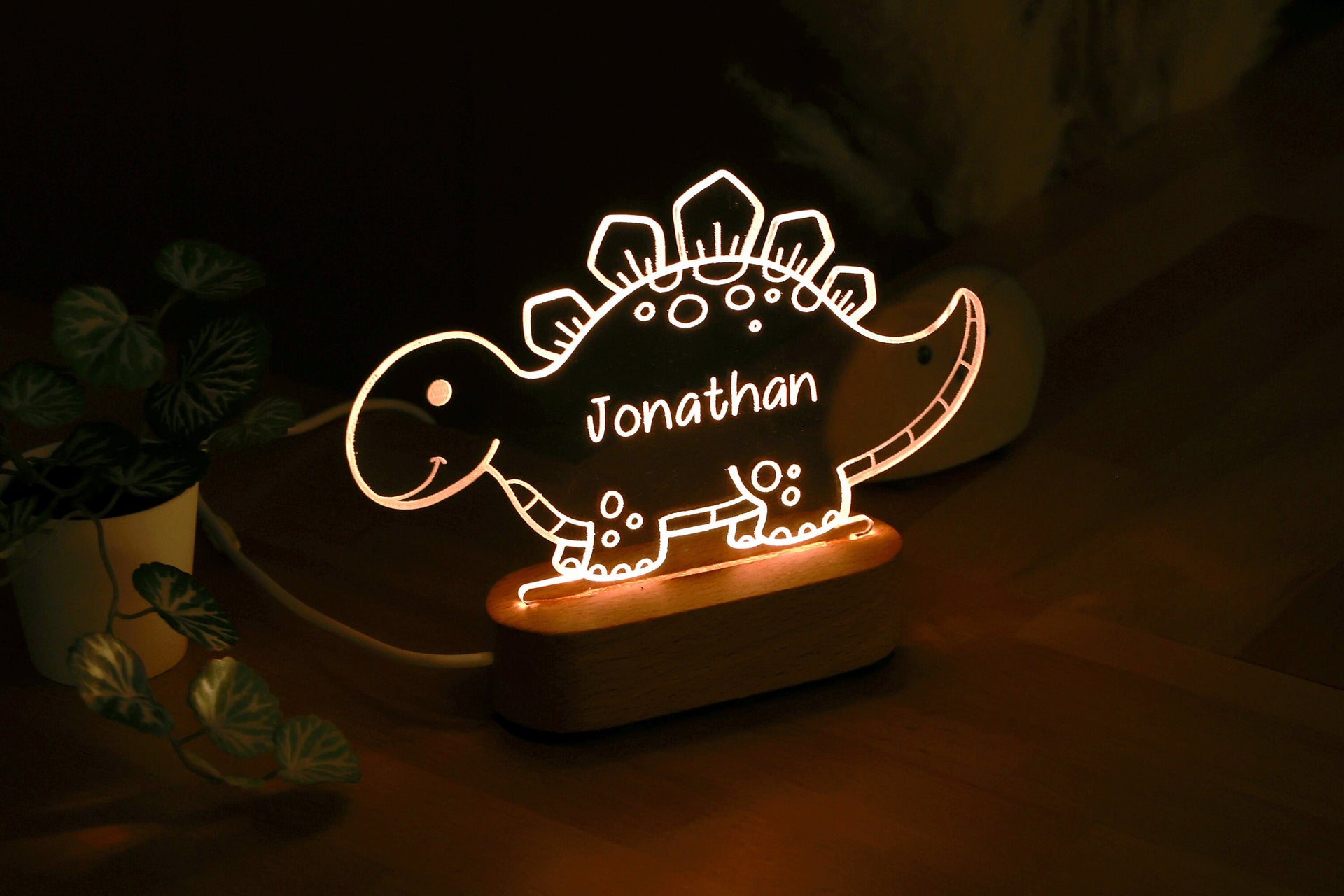 Personalisiertes LED-Nachtlicht in Dinosaurierform: Ein verspieltes Leuchten für das Zimmer des kleinen Abenteurers! Maßgeschneidert für Kinder, die vor Fantasie und Fernweh strotzen. Jedes Nachtlicht in Dinosaurierform ist nicht nur eine Lampe – es ist eine Reise in die prähistorische Zeit, die die großartigen Kreaturen näherbringt, die einst unseren Planeten bevölkerten. Ein entzückendes Geschenk, das den Entdeckergeist und die Faszination für diese urzeitlichen Riesen widerspiegelt. Die perfekte Ergänzung für ein Kinderzimmer oder Schlafzimmer mit Dino-Thema!