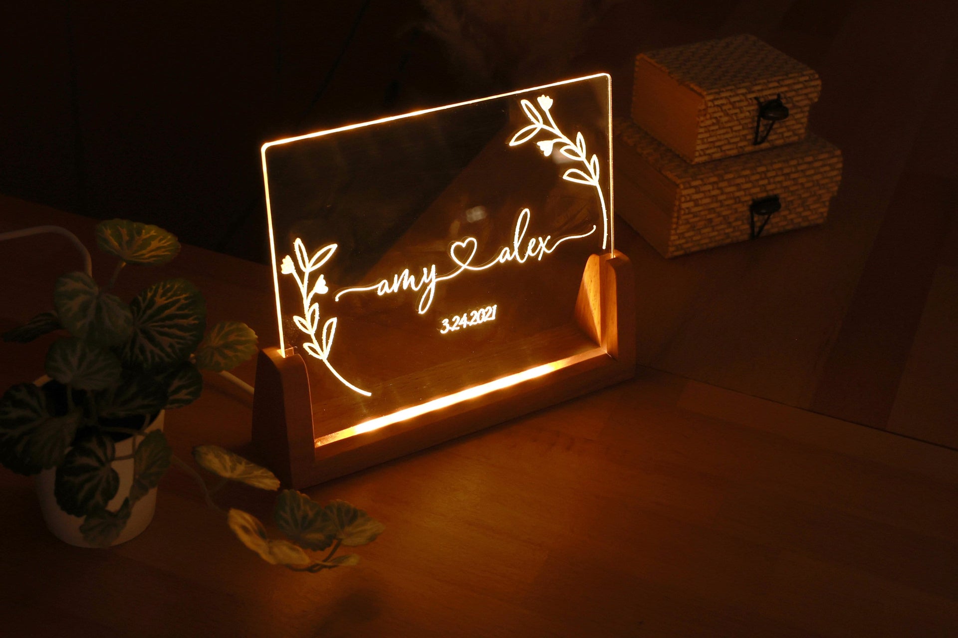 Verleihen Sie Ihrem Zimmer mit diesem wunderschönen, individuellen Nachtlicht aus Plexiglas und Holz Farbe.