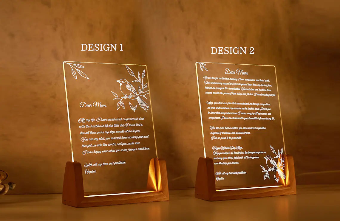 Suchen Sie nach dem perfekten Geschenk, um Ihre Liebe und Wertschätzung für Mama auszudrücken? Suchen Sie nicht weiter! Unser speziell für Mütter entworfenes LED-Nachtlicht kombiniert die Wärme einer herzlichen Botschaft mit dem sanften Leuchten eines Nachtlichts und schafft so ein wirklich berührendes und unvergessliches Geschenk.