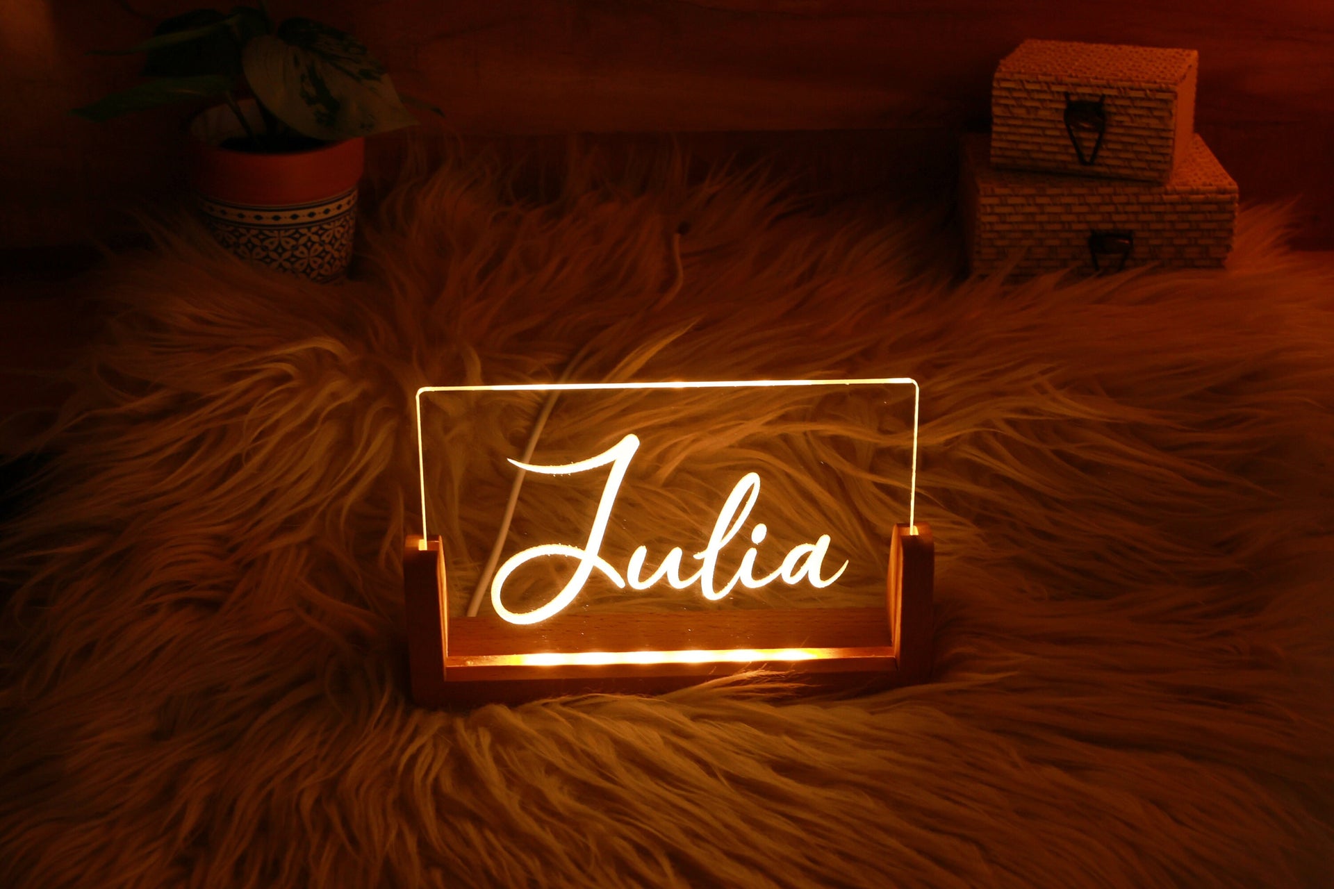 Verleihen Sie Ihrem Zimmer mit diesem wunderschönen, individuellen Nachtlicht aus Plexiglas und Holz Farbe.