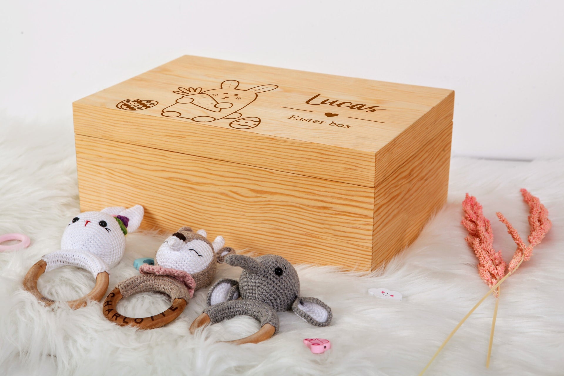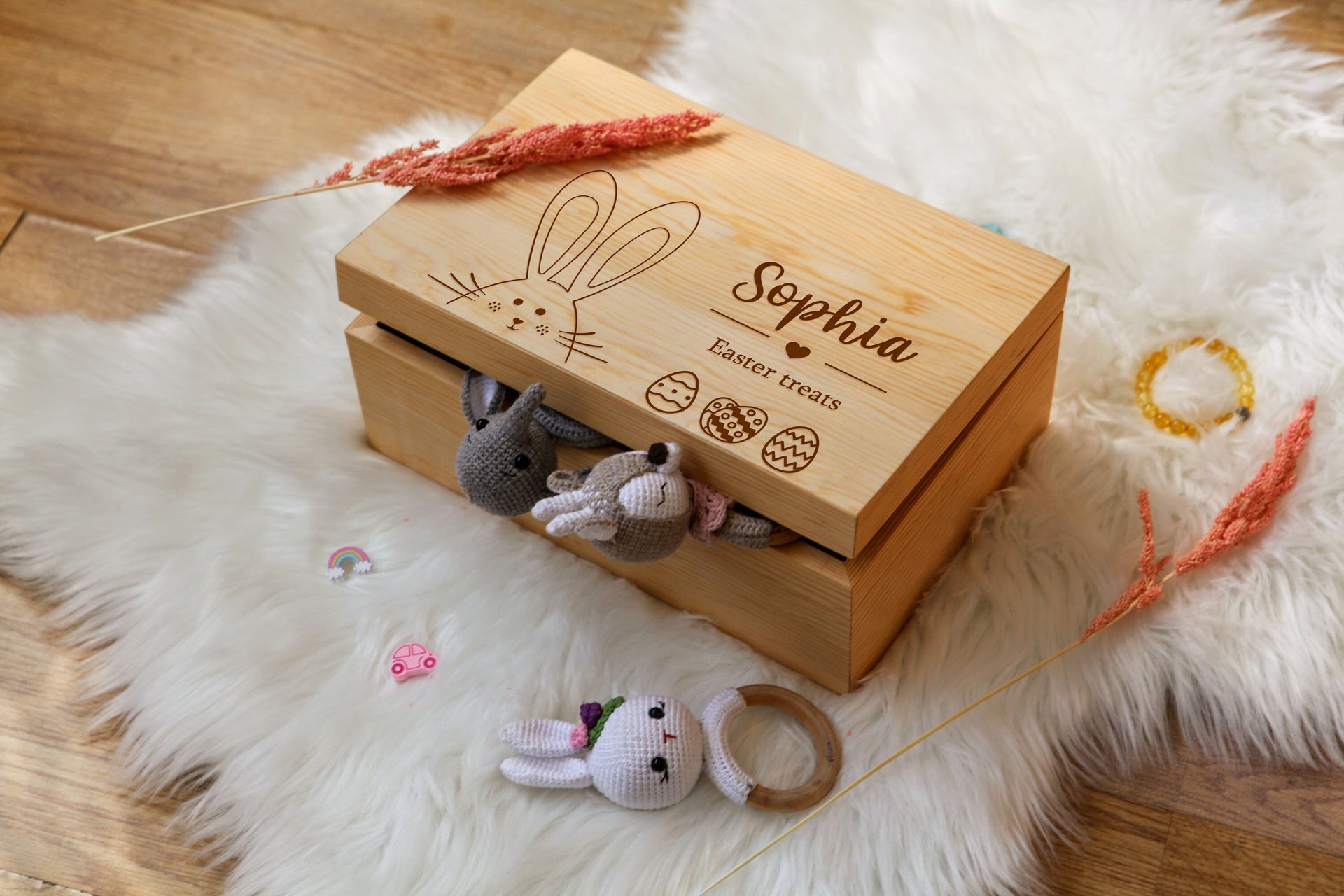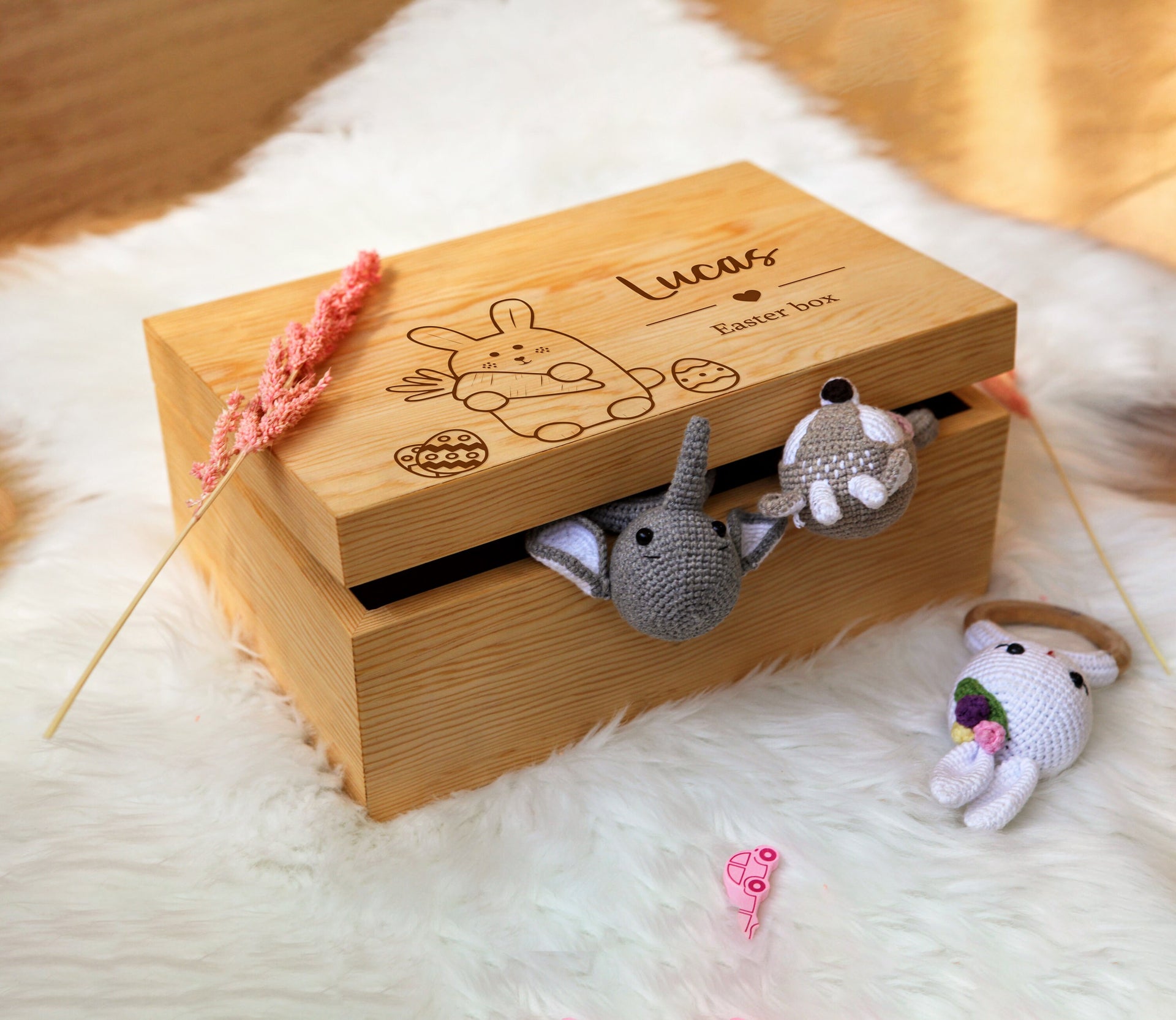 Wooden Easter Basket,Custom Easter Bunny Basket,Boy Girls Name Easter Basket,Kids Easter Gifts,Happy Easter Egg Hunt,Monogram Easter Basket