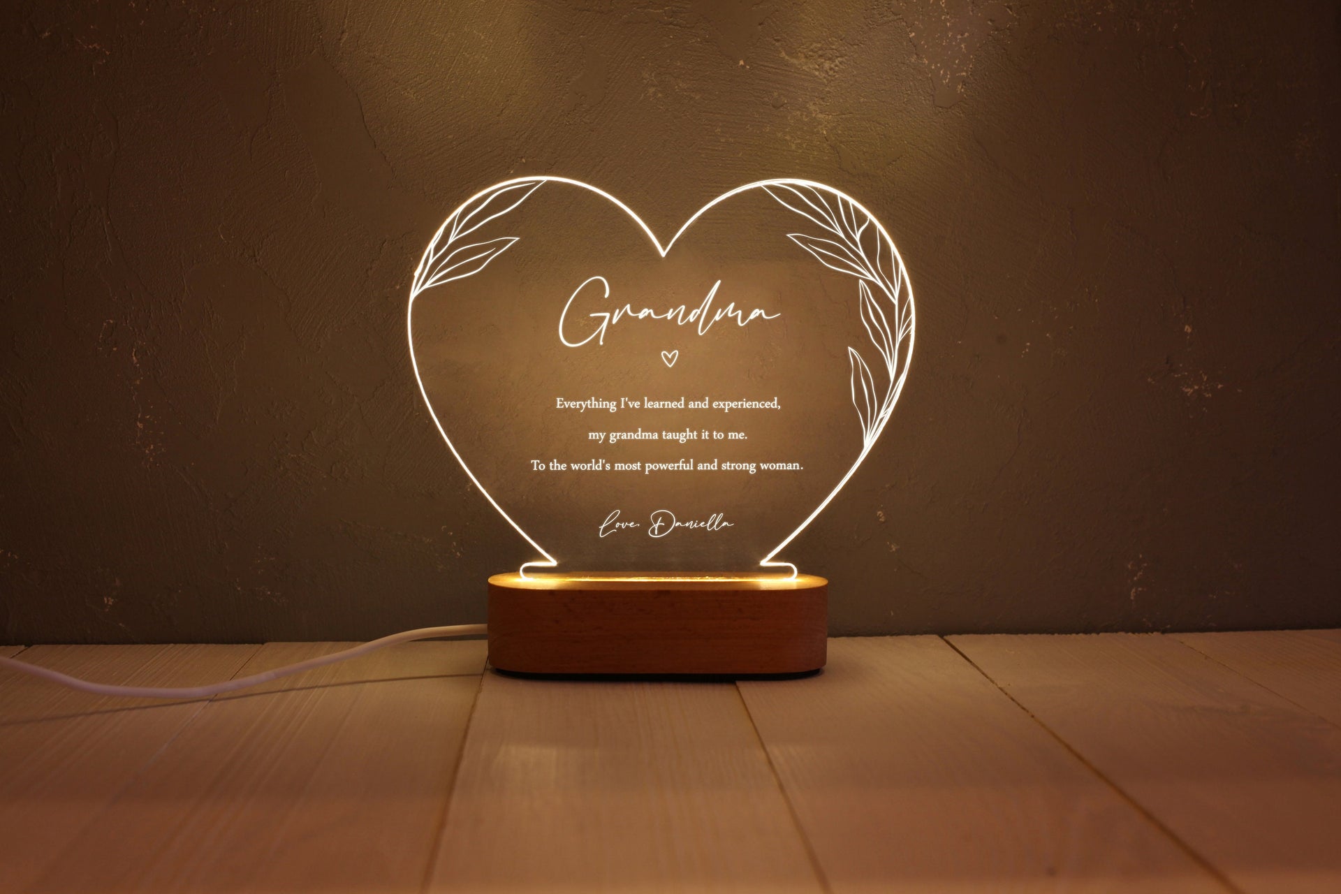 A custom night light with a your message for Mother's Day can be a wonderful gift for your mother. This lamp is not only an adorable decoration item during the day, but also adds a warm and cozy ambiance to any room at night.